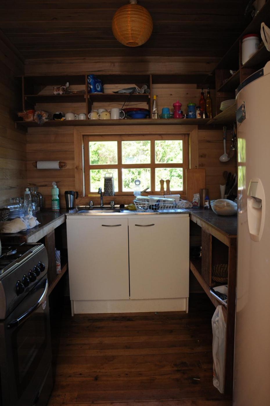 También hay una cocina equipada con nevera y tostadora.
