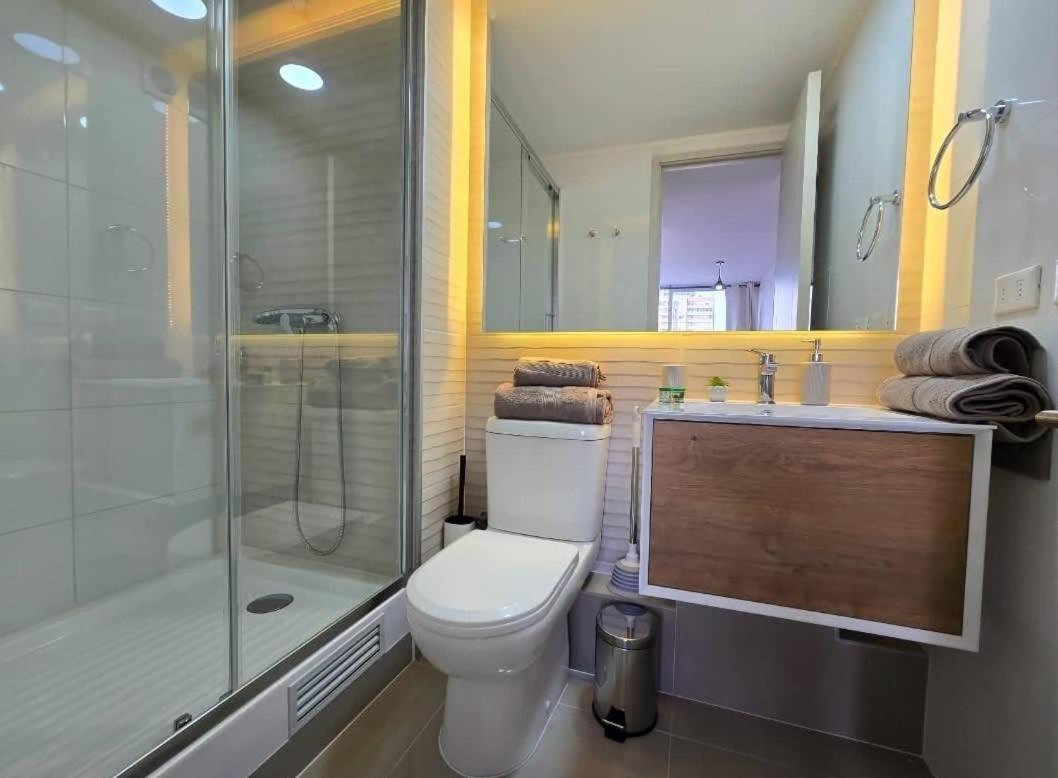 A pasos del Metro estrategico departamento se encuentra a unos 3,6 km de La Chascona, y ofrece alojamiento con piscina al aire libre y wifi gratis. El alojamiento, que está a 3,6 km de Cerro Santa LucÃa, ofrece centro de fitness.